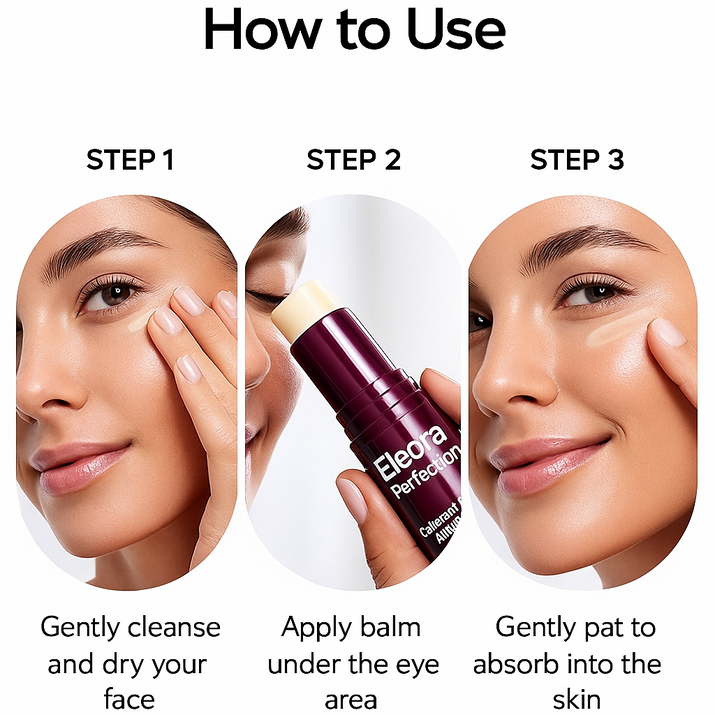 Answer 3: Glide the balm onto under-eyes, smile lines, lips, or dry areas, then gently tap to help it absorb. Use morning, night, and anytime you need a quick lift or boost of hydration.