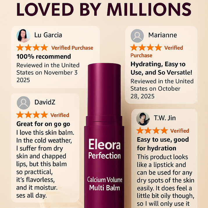Eleora Perfection™ is a solid multi-balm, not a cream — meaning the formula melts directly into your skin, delivering faster absorption, deeper nourishment, and instant visible plumping without the heaviness of traditional creams.